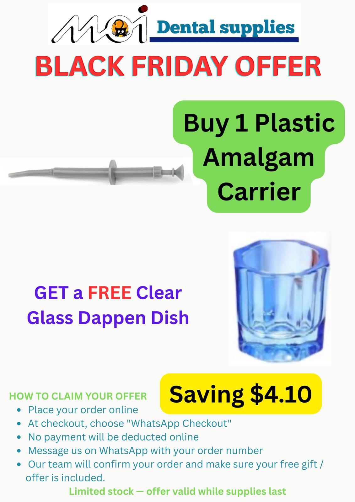 Buy 1 Plastic Amalgam Carrier + FREE Clear Glass Dappen Dish
