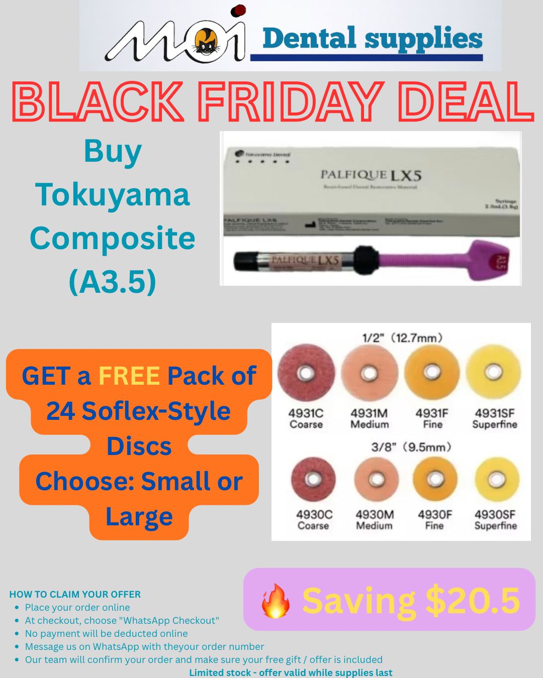 Buy 1 Tokuyama Palfique LX5 Composite (A3.5) GET a FREE Pack of 24 Soflex-Style Discs