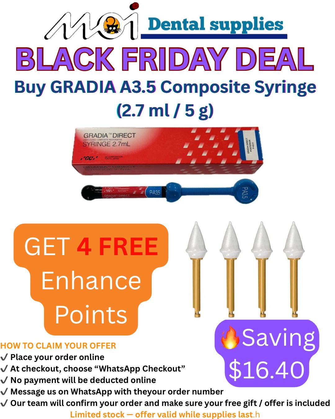 Gradia A3.5 Composite Syringe (2.7 ml / 5 g)+4 Enhance Points FREE