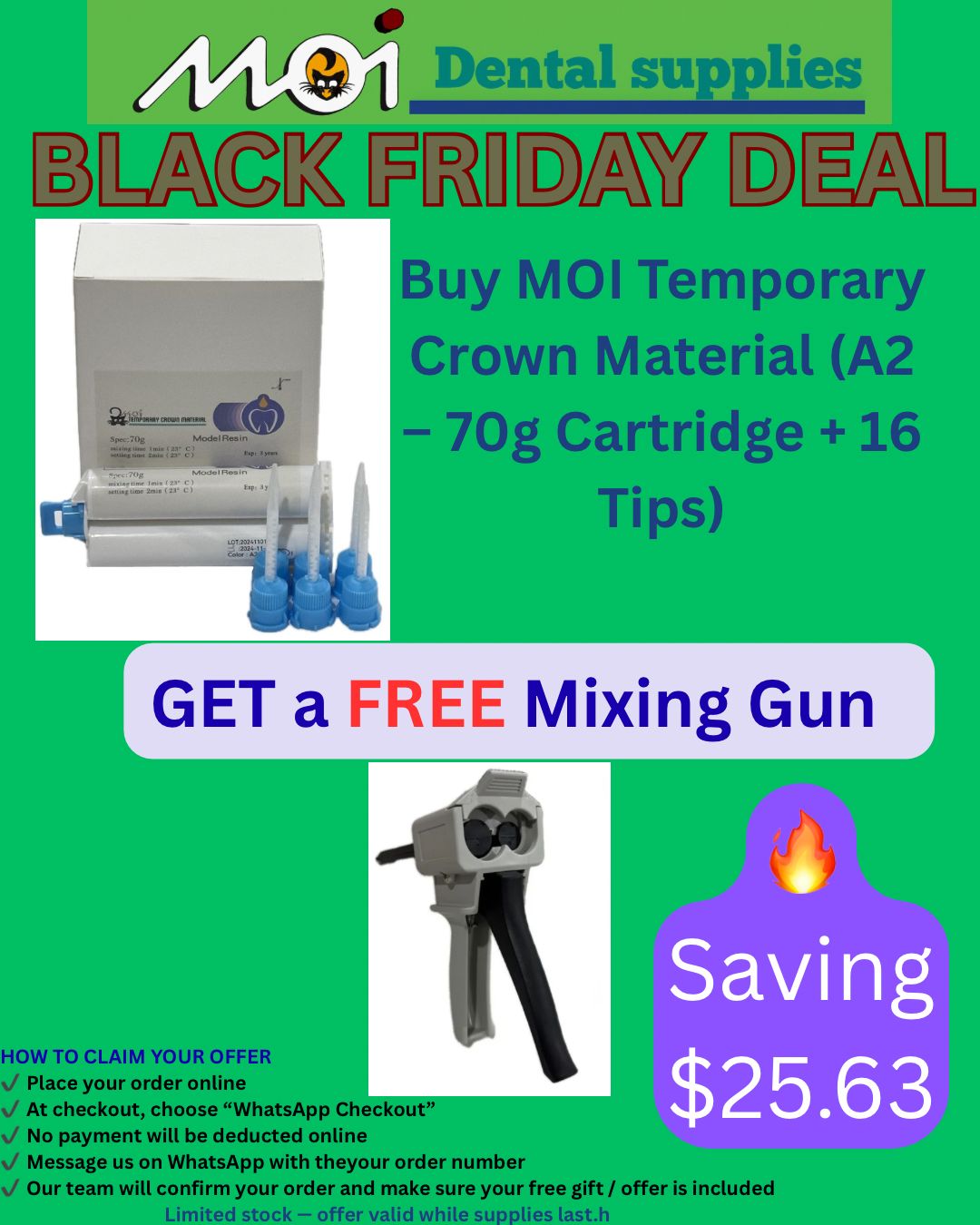 Buy MOI Temporary Crown Material (A2 – 70g Cartridge + 16 Tips)